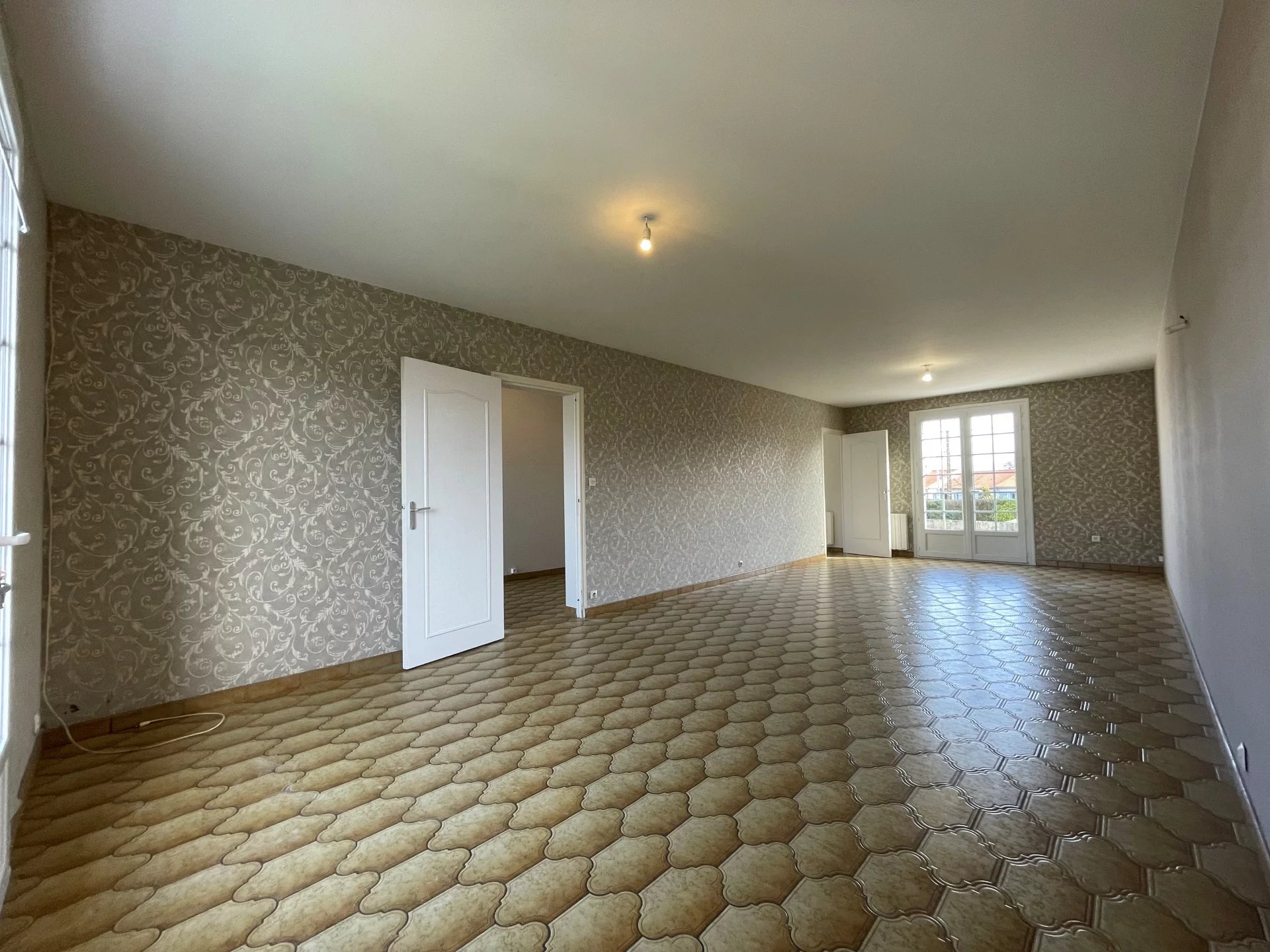 le séjour de 34 m² accueillera facilement un espace salon + salle à manger et les 3 chambres de 10m² sont équipées de placards.