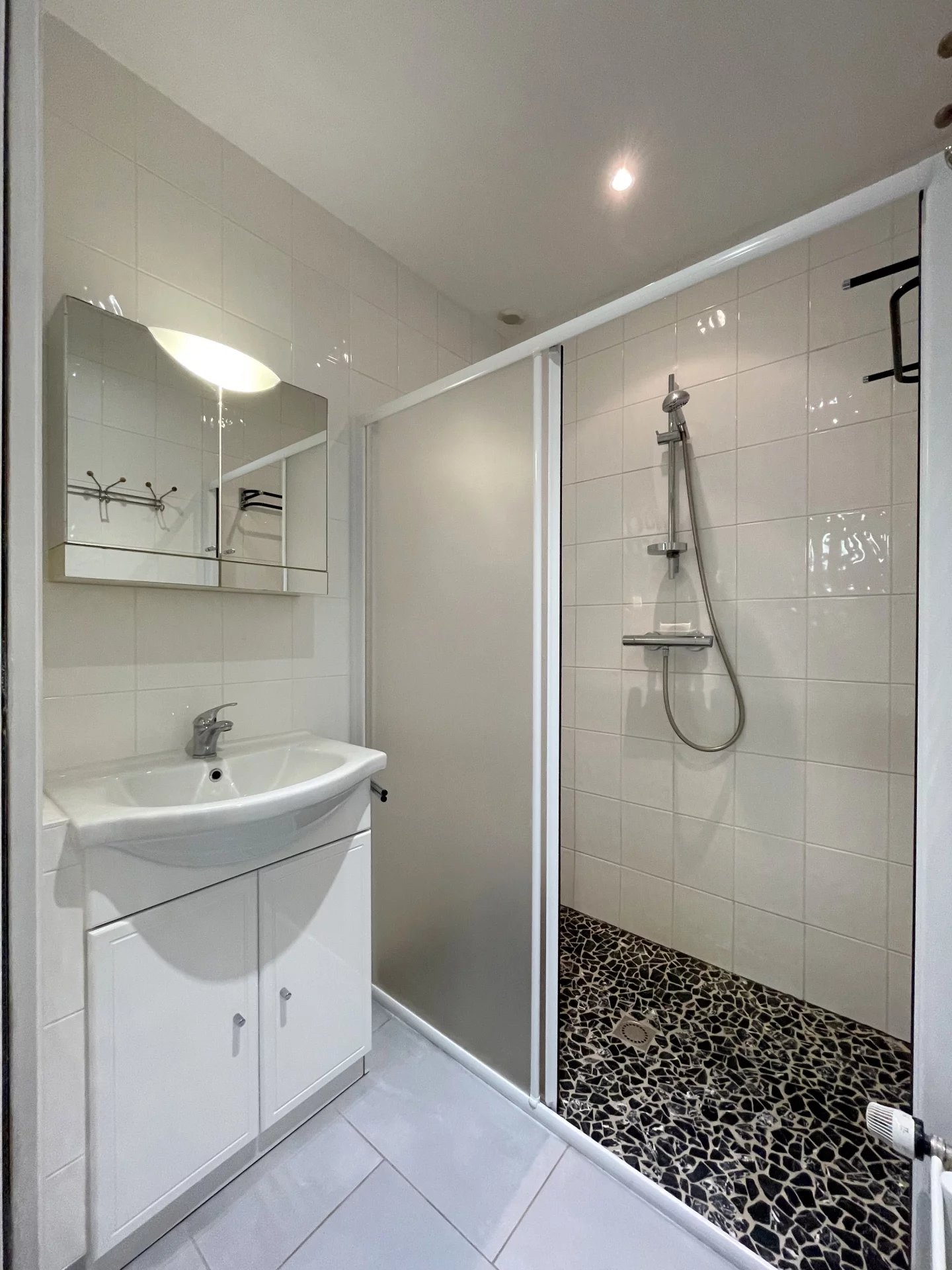 L’ensemble comprend un séjour de 27 m², 3 chambres et 1 salle d’eau avec douche.