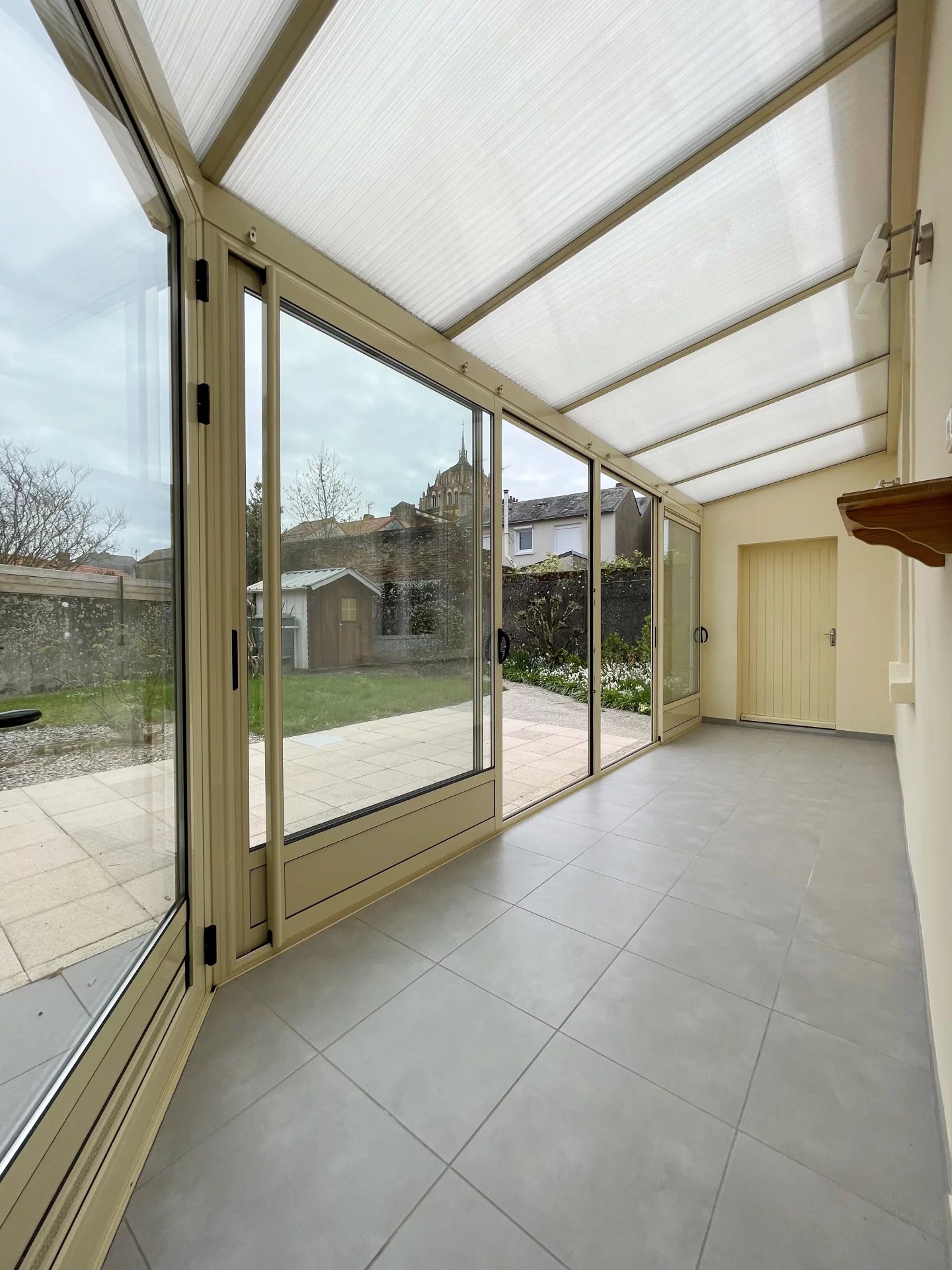 À cela s’ajoute une véranda donnant sur un joli jardin fleuri avec terrasse à entretenir.