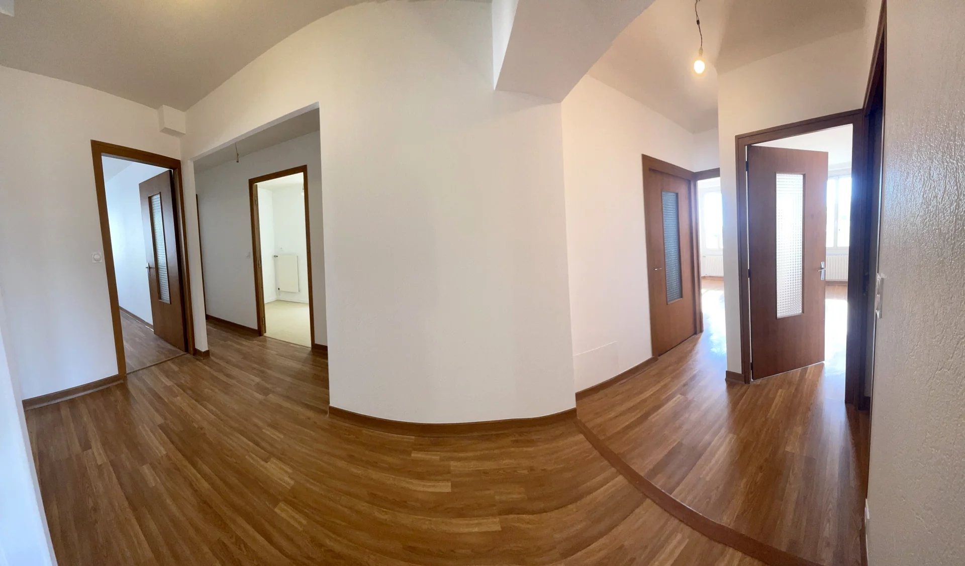 La maison dispose d’un séjour spacieux et de quatre chambres aux surfaces généreuses, permettant d’organiser séparément plusieurs espaces de vie privé et professionnel.